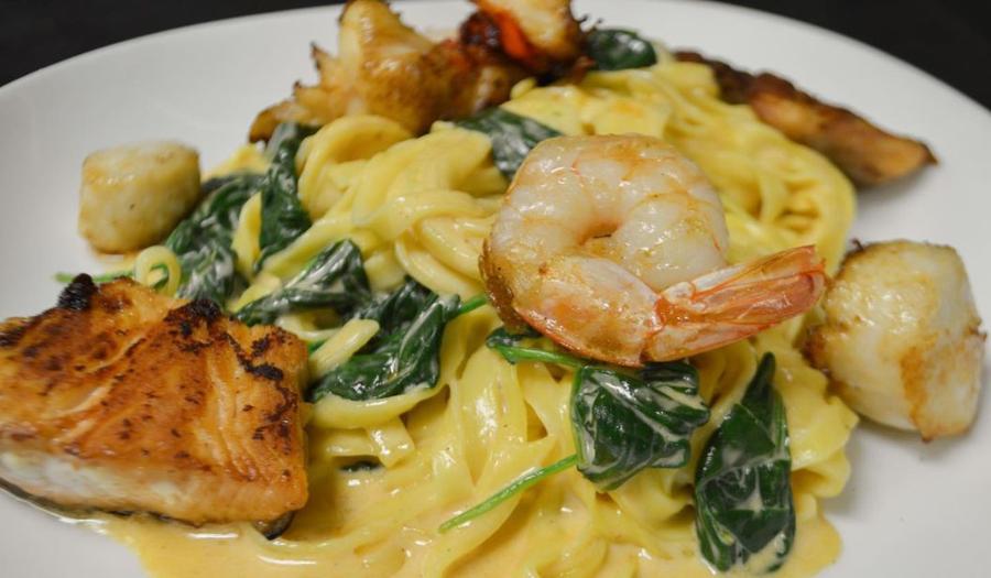 Executive Chef Paul Hughes has the Dover Sole flown in fresh from Europe. It's filleted, pan seared, and artfully garnished with their signature Almond Potato Cake and asparagus.  Other House Specialties include Beef Wellington, Yellowtail Snapper in Parchment, USDA Prime Steaks, Escargot, and the most incredible Grand Marnier Souffle!