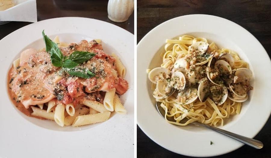 Open for lunch and dinners, this casual, cozy eatery has comfy booths where you can enjoy views of Italy on TVs as you start your feast with an order of Meatballs w/ Ricotta Cheese, Mussells Marinara or a beautiful Antipasto with crusty bread. All pair perfectly with a bottle of wine and they offer a nice, affordable selection.