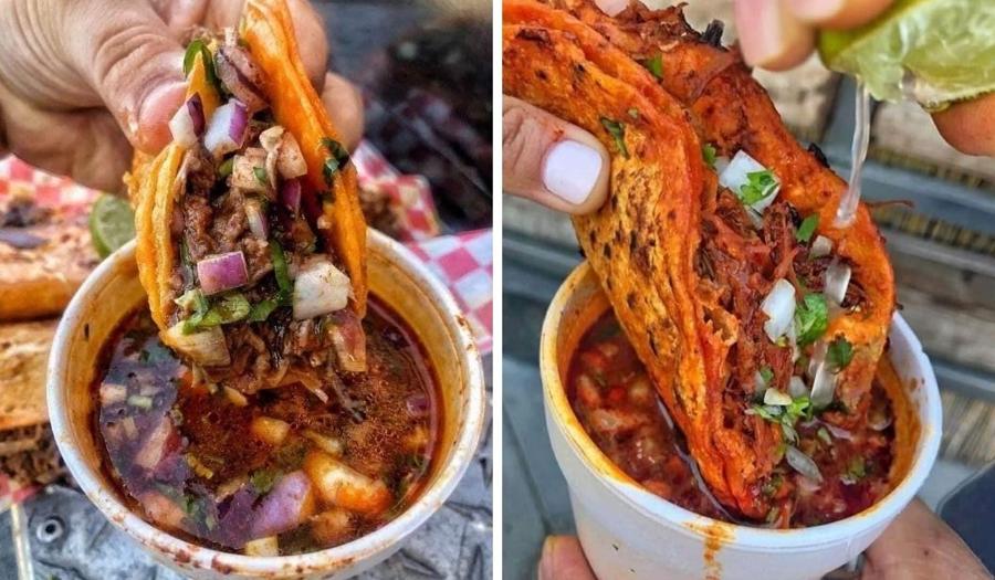 Birria (created in Jalisco, Mexico) is a flavorful stew made from braising beef in a chili-based Adobo sauce/broth. The meat is slow cooked until it becomes tender and succulent, resulting in a melt-in-your-mouth texture, and an irresistible flavor that's both savory and slightly tangy.  A Birria Taco is exactly what it sounds like.  A taco made with birria.